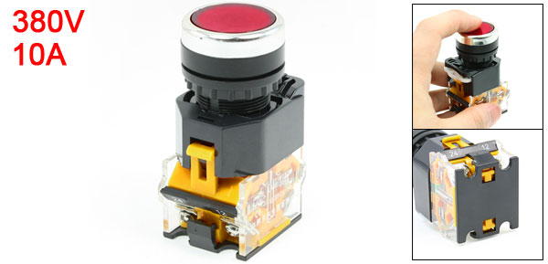 Product Name Push Button Switch Model LA38-11 Contact Type 1NO 1NC (DPST) Action Type Momentary Ith 10A Ui 380V Terminal Quantity 4 Male Thread Diameter 22mm / 0.9"(7/8") Fit Panel Max. Thickness 6mm / 0.24" Button Diameter 23mm / 0.9" Total Size(Approx) 66 x 36 x 29mm / 2.5" x 1.4" x 1.2"(L*W*T) External Material Plastic, Metal Button Color Red Net Weight 40g Package Content 1 x Push Button Switch - Reviews