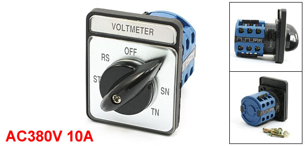 Product Name Voltmeter Switch Model No. CV-34 A007 Rating AC380V, 10A Installing Holes Dia 3mm / 0.15" Installing Size 37 x 37mm / 1.417" x 1.417"(L*W) Overall Size 60 x 48 x 82mm / 2.4" x 1.9" x 3.2"(L*W*H) External Material Plastic Color Blue & Black Net Weight 116g Package Content 1 x Voltmeter Switch - Reviews