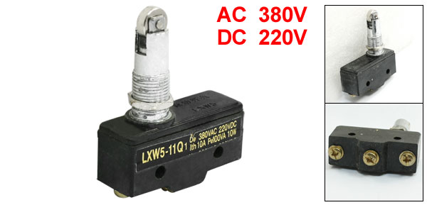 Product Name Micro Switch Model No. LXW5-11Q1 Mounting Type Panel Mount Termination Style Screw Terminal Actuator Type Parallel Roller Plunger Rating Ue: AC380V, DC220V Ith: 10A, Pe100VA, 10W Switch Body Size 5 x 1.8 x 2.7cm / 1.97 x 0.7 x 1.1"(L*W*H) Fixing Holes Dia. 0.4cm / 0.16“ Distance Between Centers of Fixing Holes 2.6cm / 1" Roller Size 1 x 0.4cm/0.39" x 0.16"(D*H) Roller Actuator Size 3.5 x 1.5cm/1.4" x 0.59"(L*W)