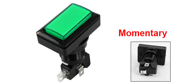 Panel Mount SPDT Momentary Game Green Rectangle Head Push Button Switch