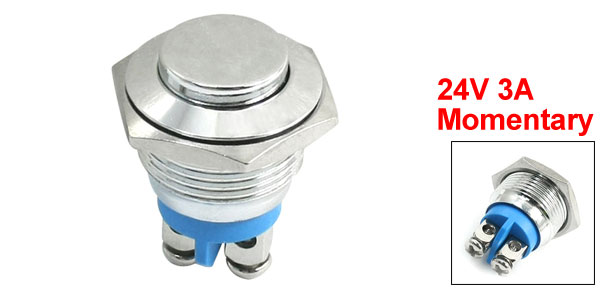 Product Name Push Button Switch Model L16A Contact Type SPST Rating Voltage 24V 3A Actuator Type Momentary Screw Terminal Number 2 Thread Dia 16mm / 0.63" Button Dia 12mm / 0.47" Overall Size(Not Included Pin ) 26 x 19mm / 1.1" x 0.75" (L*Max.D) Material Metal Color Silver Tone Weight 13g Package Content 1 x Push Button Switch - Reviews