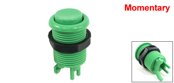 Product Name Arcade Game Push Button Action Type Momentary Contact Type SPST Pin Number 2 Mounting Hole Diameter 28mm / 1.1" Button Head Diameter 22mm / 0.87" Total Size 35 x 65mm / 1.4'' x 2.6''(Max.D*H) External Material Plastic, Metal Color Green, Black Net Weight 26g Package Content 1 x Arcade Game Push Button - Reviews