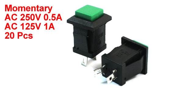 AC 125V 1APin Pitch 6mm/ 0.24" Mount Size 11 x 14 x 12mm/0.43" x 0.57" x 0.47"(L*W*H) Each Size 20 x 1.4 x 1.4cm / 0.8" x 0.47" x 0.57" (L x W x H) Color Green ,Black Material Plastic and Metal Weight 50g Package Content 20Pcs x Square Head Push Button Switch - Reviews