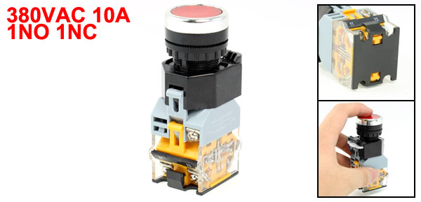 Panel Mounted 1NO 1NC Self-lock Push Button Switch 380VAC 10A w Red LED Light