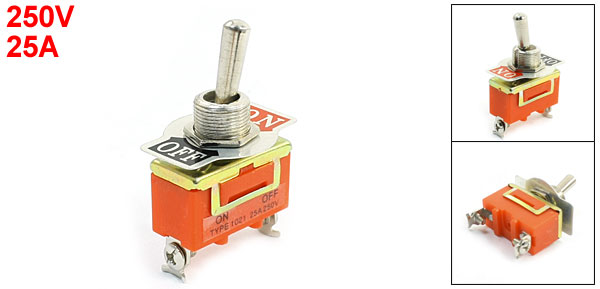 Product Name Toggle Switch Type SPST (ON/OFF) Position 2 Voltage 250V Current 25A Mounting Thread Diamter 12mm / 0.5" Main Body Size 48 x 28 x 21mm/ 1.9" x 1.1" x 0.8"(L*W*H) Overall Height 57mm / 2.2" Material Metal, Plastic Main Color Silver Tone, Orange Net Weight 29g Package Content 1 x Toggle Switch - Reviews