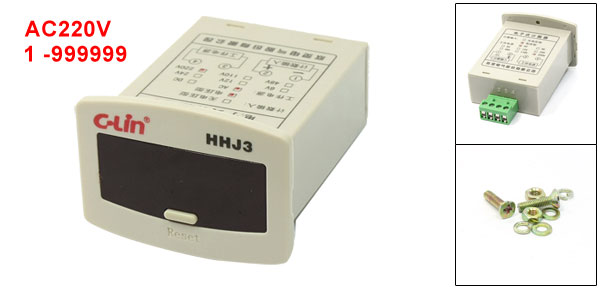 Product Name Electronic Counter Relay Model JDM11-6H Power AC220V Counting Range 1 -999999 Contacts Capacity AC 220V 3A ( resistive load) Reset Type Panel Reset Mounting Type Panel Mount Panel Size 9 x 4.4 x 5.8m/ 3.5" x 1.73" x 2.3" (L*W*T) Mounting Hole Size 5 x 2.5cm/2" x 1"(L*W) Color Gray, Green Material Plastic, Metal Net Weight 83g
