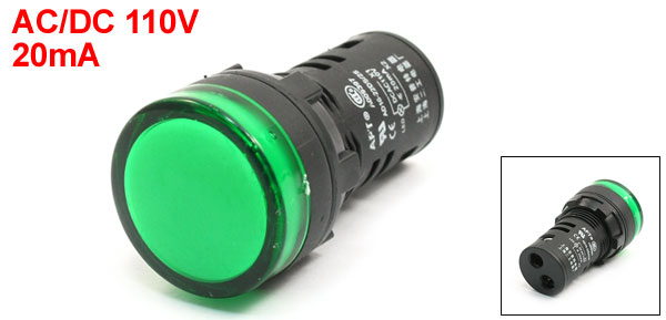 Panel Mounted AC/DC 110V 20mA Green Fault Indicator Pilot Light Lamp