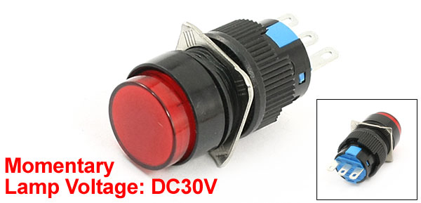 Item Name Push Button Switch Contact Type Momentary SPDT Working Voltage AC 250V 5A Light Color Red Lamp Voltage DC30V Mounting Thread Diameter 15mm / 0.6" Button Cap Dia 15mm /0.6" Terminals 3 Pin Overall Size 4 x 1.8 x 1.8cm/1.6" x 0.7" x 0.7"(L*W*T) Material Plastic, Electronic Parts Weight 7g Package Content 1 Pcs x Push Button Switch - Reviews