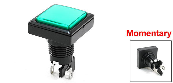 Panel Mounted SPST Momentary Game Green Square Push Button Switch