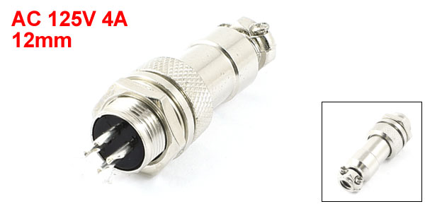 Panel Mounting 12mm Male Thread 4 Pin Aviation Connectors Plugs AC 125V 4A