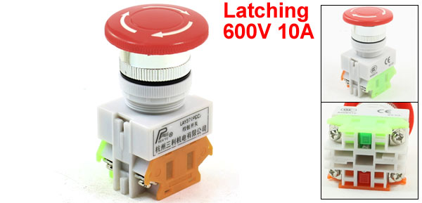 Panel Mounting 1NO 1NC Red Mushroom Head Latching Push Button Switch 600V 10A