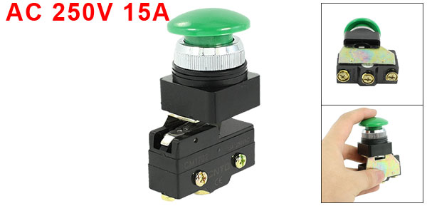 Panel Mounting 1NO+1NC Green Mushroom Head Micro Switch AC 250V 15 Amp