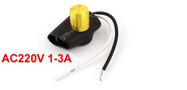 Product Name Dimmer Switch Rating AC220V 1-3A Knob Diameter 14mm/ 0.55" Overall Size 32 x 25 x 29mm/ 1.3" x 1" x 1.1"(L*W*T) Cable Length 99cm/ 3.5" Materials Plastic, Metal, Electric Parts Main Color Gold Tone Weight 15g Package Content 1 x Dimmer Switch - Reviews
