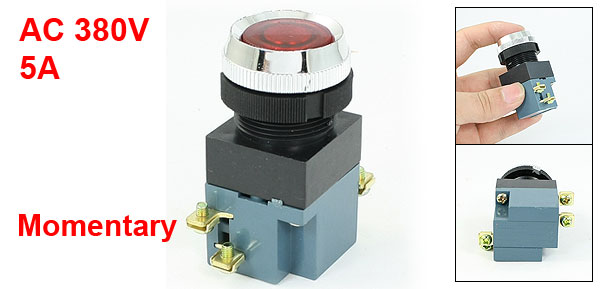 Panel Mounting Red Momentary Push Button Switch AC 380V 5A 1NO 1NC DPST