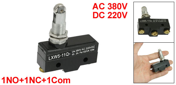 Product Name Micro Switch Model No. LXW5-11Q1 Contact Type 1NO, 1NC, 1 Com Mounting Type Panel Mount Termination Style Screw Terminal Actuator Type Parallel Roller Plunger Rating Ue: AC 380V, DC 220V