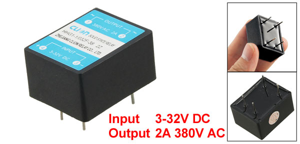 DetailsPCB 4 Pin SSR Solid State Relay in 3-32V DC Out 2A 380V AC HHG1-1/032F-38 2Z  Product Name Solid State Relay Model HHG1-1/032F-38 2Z Input 3-32V DC Output 2A 380V AC Size (Approx.) 3.3 x 2.6 x 2.7cm/1.3" x 1" x 1.1" (L*W*H) Color Black Weight 22g Package Content 1 x Solid State Relay