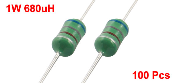 PCB Board 5x10mm 1W 680uH 10% Tolerance Axial Color Ring Inductors 100Pcs