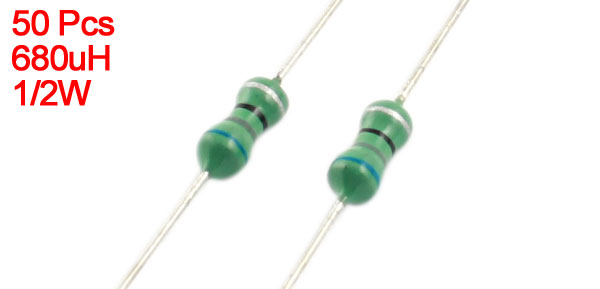 Product Name Color Ring Inductor Inductance Tolerance 10%(K) Inductance 680uH Power 1/2W Material Epoxy Resin, Metal, Inductor Body Size 4mm x 10mm / 0.16" x 0.4"(Max.D*L) Lead Diameter 0.5mm Total Length 6cm / 2.4" Net Weight 15g Package Content 50(±2%) x Color Ring Inductor - Reviews