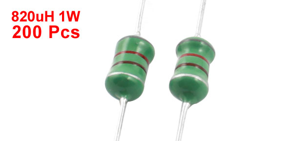 Product Name Color Ring Inductor Inductance Tolerance ±10%(K) Inductance 820uH Power 1W Material Epoxy Resin, Metal, Inductor Body Size 5mm x 10mm / 0.2" x 0.4"(Max.D*L) Lead Diameter 0.5mm / 0.02" Total Length 6cm / 2.4" Net Weight 87g Package Content 200(±2%) x Color Ring Inductor - Reviews