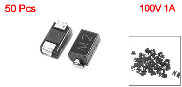 Product Name Rectifier Diode Model M2 Package Type DO-214AC Max Repetitive Peak Reverse Voltage 100V Max Average Forward Rectified Current 1A Size 5 x 2.5 x 2.2mm / 0.2" x 0.1" x 0.087" (L*W*T) Color Silver Tone, Black Weight 6g Package Content 50 (±2%) x Rectifier Diode  - Reviews