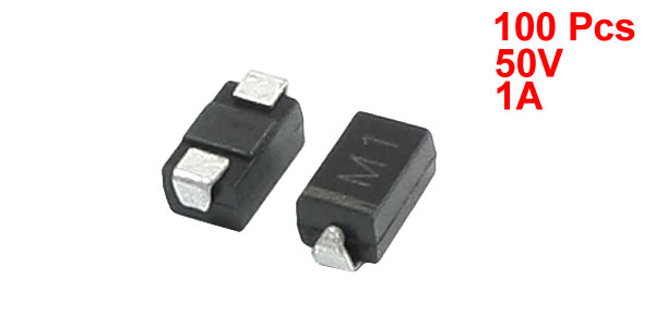 Product Name Rectifier Diode Model M1 Package Type DO-214AC Max Repetitive Peak Reverse Voltage 50V Max Average Forward Rectified Current 1A Size 5 x 2.5 x 2.2mm / 0.2" x 0.1" x 0.087" (L*W*T) Color Silver Tone, Black Weight 6g Package Content 50 (±2%) x Rectifier Diode - Reviews