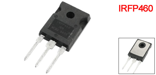 Product Name MOSFET Transistor Model IRFP460 Package TO-247 VDS 500V ID 14A Body Dimension 20 x 15 x 5mm/ 0.78" x 0.59" x 0.2" (L*W*T) Hole Dia 3mm/0.12" Weight 3g Package Content 1 x MOSFET Transistor - Reviews