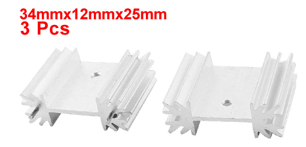 Product Name Heatsink Material Aluminium Screw Hole Dia. 2.5mm/0.01" Size 34 x 12 x 25mm / 1.3" x 0.47" x 1"(L*W*H) Color Silver Tone Net Weight 31g Package Content 3 x Heatsink - Reviews