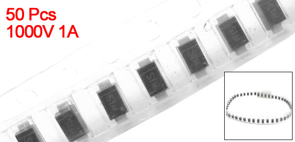 Product Name Rectifier Diode Model S1M Package Type SOD-123FL Max Repetitive Peak Reverse Voltage 1000V Max Average Forward Rectified Current 1A Size 3.7 x 1.8 x 1.3mm / 0.15" x 0.07" x 0.04" (L*W*T) Color Silver Tone, Black Weight 3g Package Content 50 (±2%) x Rectifier Diode - Reviews