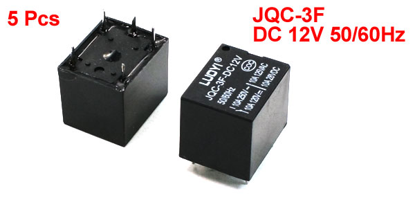 PCB Mount Black DC 12V 50/60Hz Frequency Coil Electromagnetic Relay 5 Pcs