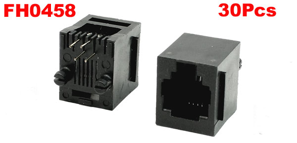 PCB Mounting 0 Degree Pins RJ11 6P4C Modular Telephone Jacks Connectors 30Pcs