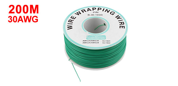 Product Name Wrapping Wire Model B-30-1000 Wire Gauge 30AWG External Wire Diameter 0.5mm Core Wire Diameter 0.25mm Cable Length 200M / 656ft Temperature Rating 80°C Reel Size 7 x 3.3cm / 2.7" x 1.3" (D*H) Material Plastic, PVC, Tin Plated Copper Main Color Green Weight 143g Package 1 x Wrapping Wire - Reviews