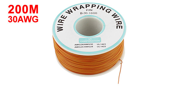 Product Name Wrapping Wire Model B-30-1000 Wire Gauge 30AWG External Wire Diameter 0.5mm Core Wire Diameter 0.25mm Cable Length 200M / 656ft Temperature Rating 80°C Reel Size 7 x 3.3cm / 2.7" x 1.3" (D*H) Material Plastic, PVC, Tin Plated Copper Main Color Orange Weight 143g Package 1 x Wrapping Wire - Reviews
