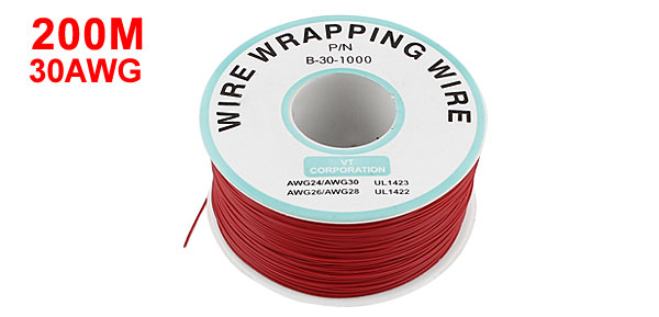 Product Name Wrapping Wire Model B-30-1000 Wire Gauge 30AWG External Wire Diameter 0.5mm Core Wire Diameter 0.25mm Cable Length 200M / 656ft Temperature Rating 80°C Reel Size 7 x 3.3cm / 2.7" x 1.3" (D*H) Material Plastic, PVC, Tin Plated Copper Main Color Red Weight 143g Package 1 x Wrapping Wire - Reviews