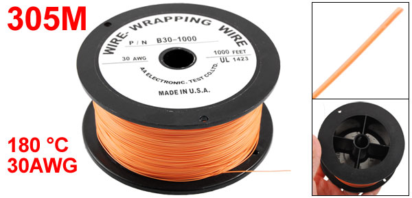 Product Name Wrapping Wire Model P/N B30-1000 UL1423 Type 30AWG Wire Size 0.5 x 0.25mm / 0.019" x 0.009"(OD*Core Dia.) Cable Length(Approx.) 305M / 1000Ft Temperature Rating 180 °C Reel Size 10 x 4.5cm/ 3.9" x 1.8"(D*H) Material Plastic, PVC, Tin Plated Copper External Color Black, Orange Weight 249g Package 1 x Wrapping Wire - Reviews