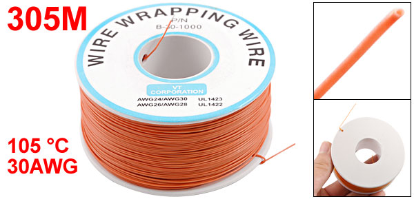 PCB Solder Orange Flexible 0.5mm Outside Dia 30AWG Wire Wrapping Wrap 1000Ft