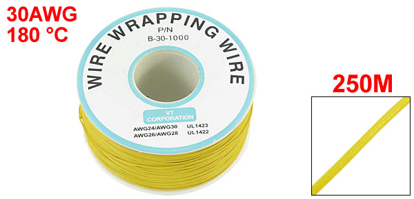 PCB Solder Yellow Flexible 0.25mm Core Dia 30AWG Wire Wrapping Wrap 820Ft
