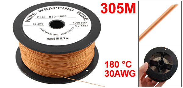 Product Name Wrapping Wire Model P/N B30-1000 UL1423 Type 30AWG Wire Size 0.5 x 0.25mm / 0.019" x 0.009"(OD*Core Dia.) Cable Length(Approx.) 305M / 1000Ft Temperature Rating 180 °C Reel Size 10 x 4.5cm/ 3.9" x 1.8"(D*H) Material Plastic, PVC, Tin Plated Copper External Color Black, Brown Weight 243g Package 1 x Wrapping Wire - Reviews