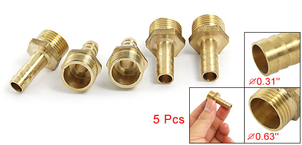 Product Name PEX Pipe Adapter Type Crimp Pipe to Male Thread Hose Tail OD 8mm/0.31'' Thread Diameter 16mm/0.63'' Inner Hole Diameter 6mm/0.24'' Total Size 33 x 21mm/1.3'' x 0.8'' (L*Max.D) Color Gold Tone Material Metal Weight 60g Package 5 x PEX Pipe Adapter - Reviews