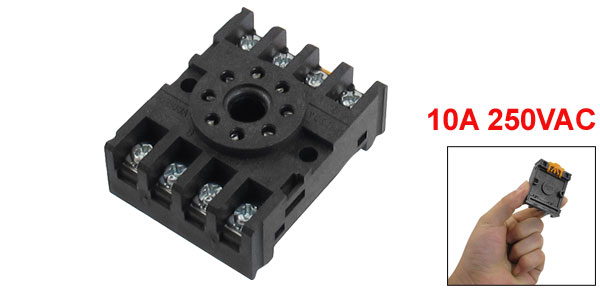 Product Name Socket Base Model PF-083A Fit for MK2P Rated Load 10A 250VAC Pin Quantity 8 Total Size(Approx) 5.5 x 4 x 2.1cm / 2.2" x 1.58" x 0.84"(L*W*H) Installing Hole Dia. 4mm / 0.158" External Material Plastic, Metal Main Color Black Weight 35g Package Content 1 x Socket Base - Reviews