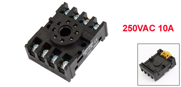 Product Name Socket Base Model PF083A Rated Load 250VAC 10A Pin Quantity 8 Total Size(Approx) 5.1 x 4 x 2.1cm / 2" x 1.6" x 0.83"(L*W*H) Installing Hole Dia. 5mm / 0.2" External Material Plastic, Metal Main Color Black Weight 33g Package Content 1 x Socket Base - Reviews