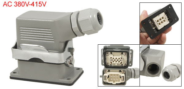 Product Name Connector Contacts Type 6 Pin ( Crimp Terminal ) Screw Connector PG16E ( for 22.5mm dia thread head) Working Voltage AC 380V-415V Working Current 16A Anti-fire Class V0 ( according to UL 94) Temperatuer Range -40°C to +125°C Case Material Die Cast Aluminium Contacts Material Copper Alloy Color Gray & Silver Tone Mounting Size 6.8 x 3.2cm/ 2.68" x 1 1/4" (L*W) Overall Size 11 x 6 x 8cm/ 4.3" x 2.4" x 3.1" (L*W*H) Net Weight 663g Package 1 x Connector - Reviews
