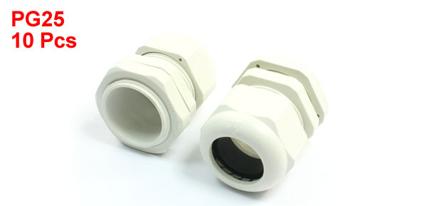 Product Name Cable Gland Model PG25 Operating Temperature -40~+100°C/-40~212F Cable Range 16-21mm / 0.63"-0.83" Thread O.D. 30mm / 1.2" Total Size 3.7 x 4.6cm / 1.4" x 1.8" (Max.D*H) Material Plastic Color Off White Weight 253g Package Content 10Pcs x Cable Glands - Reviews