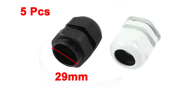 PG25 White Black Plastic Waterproof Cables Glands Connector 5Pcs