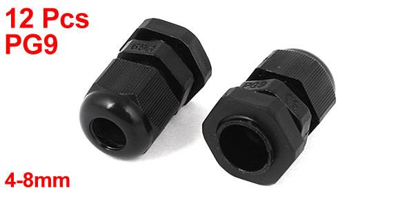 PG9 Waterproof Wire Cable Glands Clamp Black Plastic Connector 12pcs