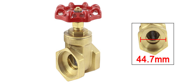 Product Name Gate Valve Round Grip Size 75 x 17mm/2.95" x 0.7" (D*T) Female Thread Diameter 1 1/2" PT to 1 1/2" PT (44.7mm to 44.7mm) Total Size 51 x 60 x 118mm/2" x 2.4" x4.6"(L*W*H) Color Gold Tone , Red Material Solid Brass Weight 619g Package 1 x Gate Valve - Reviews