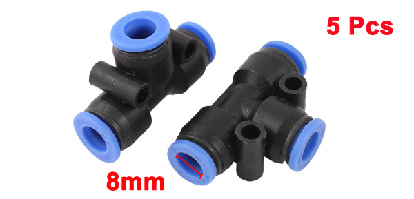 Piping Quick Fittings 8mm to 8mm T Joint Adapter 5 Pieces