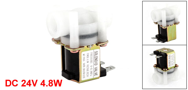 Product Name Solenoid Valve Type Water Inlet Solenoid Valve Contact Type NC Type 2 Position 2 Way Working Medium Air, Water, Oil Power 4.8W Voltage DC 24V Operating Pressure 0-0.8Mpa Pipe Size PT 1/4" Thread Diameter 12mm/0.47" Total Size 57 x 47 x 31mm/1.77" x 1.85" x 1.2"(L*W*H) Material Brass, Plastic Color Black, Gold Tone,White Weight 99g Package Content 1 x Solenoid Valve  - Reviews