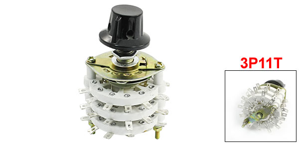 Product Name Rotary Switch Model KCT3*11 Material Metal, Plastic Dimensions(knob not included) 54 x 73mm / 2.1" x 2.9"(Max.D*H) Knob Size 30 x18mm/ 1.2" x 0.71"(Max.D*T) Fit Mounting Hole Diameter 10mm / 0.39" Pin Number 36 Contact Type 3P11T Weight 86g Package Content 1 x Rotary Switch - Reviews