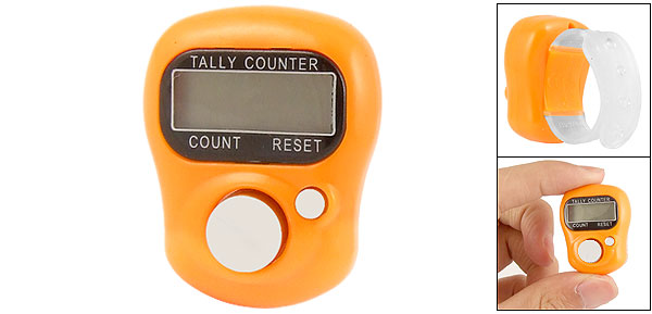 Product Name Finger Counter Material Plastic Count Range 0-99999 Counter Size 3.5 x 2.8 x 1.4cm/1.3'' x 1.1'' x 0.6''(L*W*H) Band Size 8.5 x 1.5cm/3.3" x 0.6"(L*W) Fit Finger Girth 6.5cm/2.5" (Max) Color Orange Band Color Clear White Net Weight 11g Package Content 1 x Finger Tally Counter - Reviews