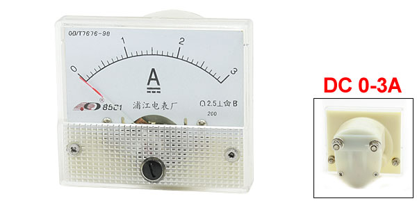 Product Name Analog Ammeter Model 85C1 Measuring Current Range DC 0-3A Accuracy Class 2.5 Total Size 64 x 56 x 58mm / 2.5" x 2.2" x 2.3"(L*W*T) Thread Dia. 4mm/ 0.16"